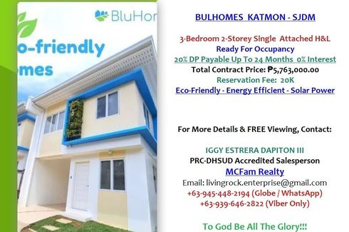 BLUHOMES KATMON SAN JOSE DEL MONTE: 3-BEDROOM 2-TOILET & BATH 1-CAR GARAGE 2-STOREY SINGLE ATTACHED HOUSE & LOT