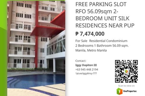 RFO 56.09sqm 2-BEDROOM SILK RESIDENCES VERY NEAR PUP MAIN CAMPUS & UBELT FREE PARKING 25K TO RESERVE