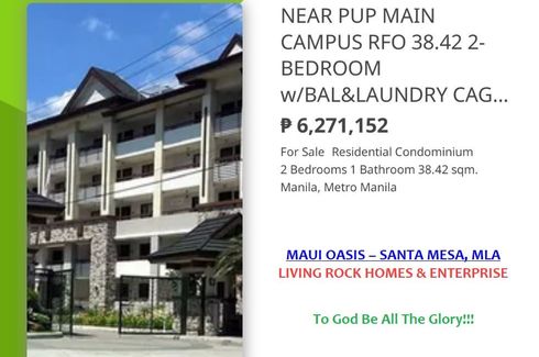 🍇🥬ONLY 20K TO RESERVE🌽38.42sqm RFO🌽2-BEDROOM w/BAL & LAUNDRY CUBICLE🌽MAUI OASIS SANTA MESA🌽WALKING DIST TO PUP MAIN CAMPUS🥬🍇
