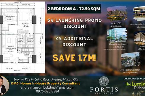 Homey Bigger Cut 2 BR Unit (72.50 sqm) in Fortis Residences | High-End Resort Inspired Condo in Makati by DMCI Homes | Exclusive