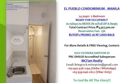 🏈🌽🌹EL PUEBLO CONDOMINIUM – ANNEX A PROJECT THE MOST AFFORDABLE CONDO UNIT IN SANTA MESA AREA ONLY 135K PRICE PER Sq.M.🏈READY FOR OCCUPANCY 24.5sqm 2-BEDROOM TOTAL AREA GRANDE MODEL🏈IDEAL FOR END-USE OR FOR RENTAL BUSINESS - EASY TO LEASE OUT, FEW WALKS AWAY TO PUP MAIN CAMPUS, FULLY SECURED & WELL MAINTAINED PROPERTY🌹🌽🏈