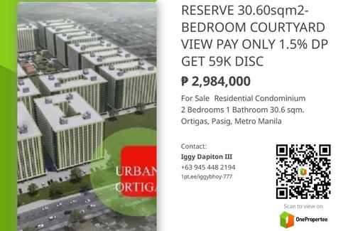 GET 59K DISCOUNT RESERVE RFO 30.60sqm 2-BEDROOM-B MID ZONE URBAN DECA HOME ORTIGAS