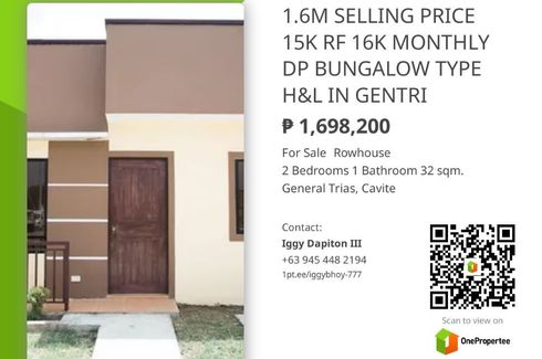 1.6M SELLING PRICE 15K RESERVATION FEE 16K MONTHLY RESERVE 2-BEDROOM 1-T&B 1-CAR GARAGE BUNGALOW TYPE H&L IN GENTRI