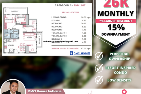 26K! BIGGER CUT 87.00 sqm 3BR Condo in Commonwealth Quezon City - DMCI Homes