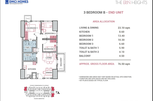 76.50 sqm 3-bedroom Condo For Sale in Quezon City by DMCI Homes
