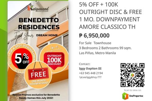 PROMO ALERT 5% TCP OFF + 100K OUTRIGHT DISCOUNT RESERVE 3-BEDROOM 3-STOREY AMORE CLASSICO TOWNHOUSE – LAS PIÑAS CITY