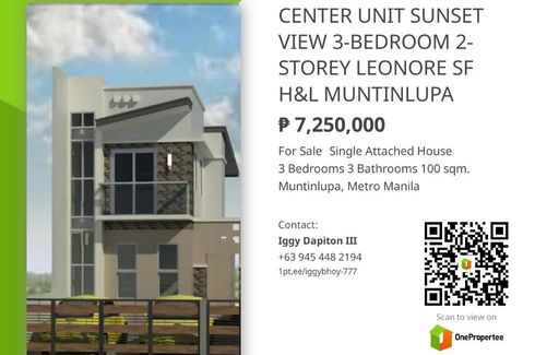 3-BEDROOM 3T&B 2-STOREY CENTER UNIT SUNSET VIEW LEONORE SF H&L MUNTINLUPA CITY 50K TO RESERVE