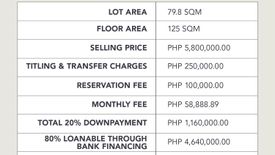80% Loanable Through Bank Financing: Php 4,640,000.00