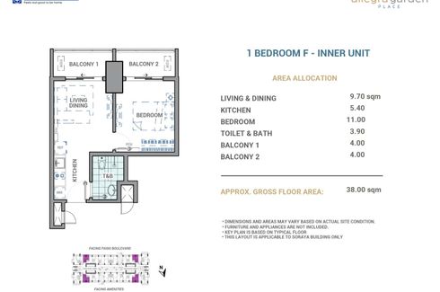 Pre selling 1BR 38sqm Allegra Garden Place Condo in Pasig Blvd. near BGC & Ortigas