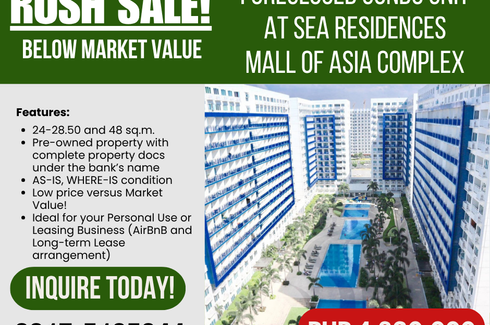 RUSH SALE! FORECLOSED CONDO UNIT AT Sea Residences in Mall of Asia Complex near Aseana CBD and PITX