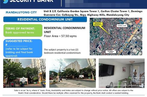 For Sale,Foreclosed in California Garden Square Highway Hills,Mandaluyong