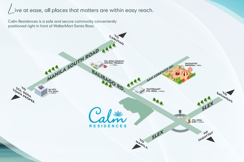 Located in the bustling city of Santa Rosa, Laguna Province, Calm Residences is a tranquil garden community that offers the soothing presence of nature alongside the convenience of modern shopping. Live in a calm and well maintained community surrounded by lush gardens and friendly neighbors.