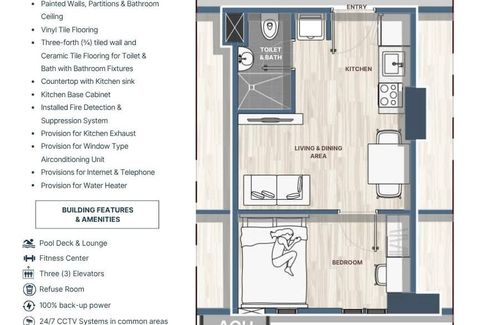 • Provisions for window-type AC, water heater, internet, and telephone