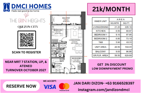 Studio Condo unit in T.Sora QC near UP Diliman by DMCI Homes The Erin Heights Preselling
