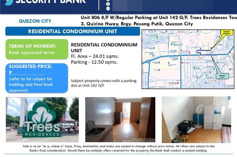 For Sale Foreclosed in Trees Residences Pasong Putik Proper, Quezon City,Metro Manila