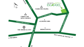 Amang Rodriguez Avenue corner Calle Industria, Manggahan, Pasig City Located within the thriving Pasig City, Acacia Escalades takes you closer to all the best places for leisure and work. Strategically built at Amang Rodriguez Avenue corner Calle Industria in Manggahan, Acacia Escalades is a close enough drive to city hotspots, while still providing you with the peace and quiet of a residential community. Just a few minutes away are the exciting retail and dining choices at Eastwood City and the sheer convenience of having groceries nearby. Top educational institutions are within the neighborhood as well or just a short car ride away. The development is also close to the Ortigas Central Business District, thus, making major business deals and meetings all within reach. Acacia Escalades' central address means easy access as well to different transportation systems, conveniently taking one from home to various points across the metro.