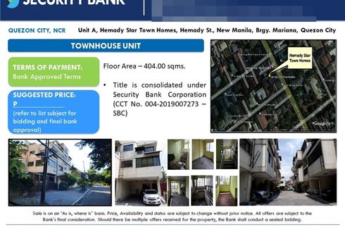 For Sale Foreclosed House & Lot in Hemady Star Town Homes New Manila, Quezon City