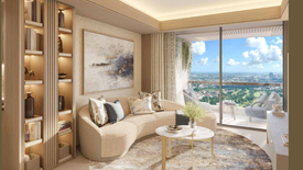 The airy living area of the Two-Bedroom Residences opens onto a private balcony inviting in generous natural light and offering sweeping panoramic views of the city.