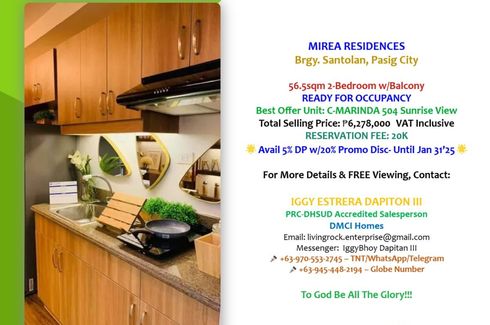 Ready for Occupancy 56.5sqm 2-Bedroom w/Balcony – Mirea Residences Pasig! Reserve for Only ₱20K Today & Get 20% Exclusive Client Discount! Only 5% DP!