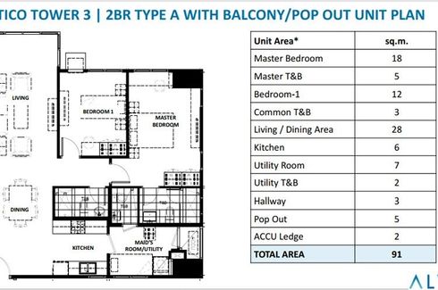 FLOOR AREA: 91 sqm