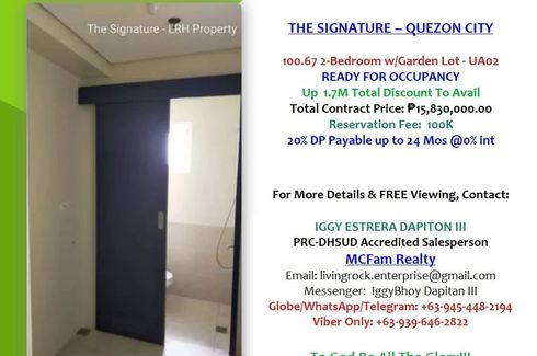 Near MCU-WCC In Caloocan City: RFO 100.67sqm 2-Bedroom w/Garden Lot The Signature-Quezon City 100K Reservation Fee
