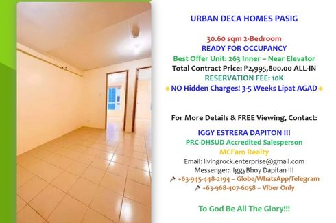 Available For Purchase: Prime Location at Urban Deca Homes Pasig – Near MRT-4 & Business Districts! RFO 30.60sqm 2-Bedroom – Only 10K Cash Out! NO DP!