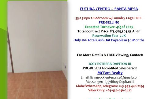 For Sale: Pre-Selling 33.23sqm 2-Bedroom w/Laundry Cage Futura Centro Very Near to PUP Main Campus – Ideal For Rental Business 20K Reservation Fee