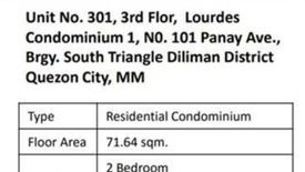 Unit No. 301, 3rd Flor, Lourdes Condominium 1, N0. 101 Panay Ave., Brgy.