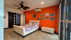 The master bedroom is exceptionally spacious, complete with floor-to-ceiling built-in wardrobe cabinets and sliding glass doors that open directly to the covered lanai. The master suite also includes a stylish and generous en suite bathroom with its own dedicated closet cabinetry.