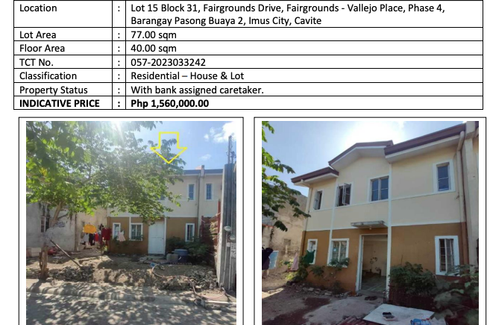 LOCATION: Lot 15 Block 31, Fairgrounds Drive, Fairgrounds - Vallejo Place, Phase 4, Barangay Pasong Buaya 2, Imus City, Cavite