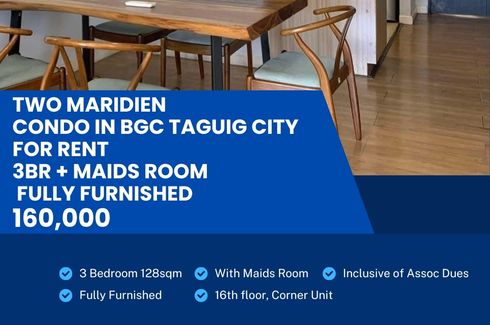 3BR with maids Room Two Maridien Fully Furnished Condo For Rent in BGC Taguig