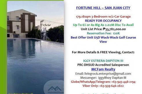 Very Near To Xavier School, La Salle Greenhills RFO 179.18sqm 3-Bedroom w/2-Slot Parking, Ledge, & Foyer Fortune Hill San Juan City 140K To Reserve