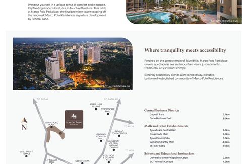 In this place, elegance abounds. Imagine living luxuriously everyday, moving into a home with five-star amenities and waking up every morning to a view of a city. Experience having a lifestyle to match your corner office and a home for everything you find precious. Created by Architect Jose Pablo C. Recio and with the interior design of Getty’s Chicago Group, Inc, your home bears the highest mark of lifestyle and excellence. Located in Nivel Drive, the most prestigious part of Cebu, Marco...