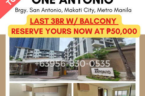 For Sale Last 3BR w/ Balcony in Makati, San Antonio - One Antonio, Sacred Heart cor Dao Streets, Barangay San Antonio, Makati City, Unfurnished unit