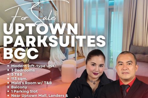 For Sale! Luxe Modern 3-Bedroom Fully Furnished Loft Unit in Uptown Parksuites BGC near Uptown Mall, Landers and Mitsukoshi Mall