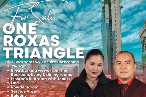 For Sale, Luxury 314 sqm. 3 Bedroom Unit at One Roxas Triangle Tower 1 at the heart of Makati Central Business District