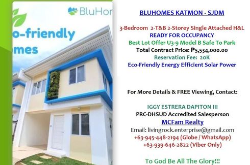 Only 20K To Reserve U3-9 Best Lot Near Secondary Gate Safe to Park 3-Bedroom 2-Storey Single Attached BluHomes-SJDM