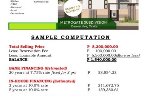 House and Lot for Sale near Ready For Occupancy Single Attached in Metrogate Dasmariñas Cavite Near SM and Robinsons pala pala