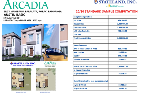 Arcadia by Suntrust Amsterdam Model: 3-Bedroom House and Lot for Sale in a Subdivision in Porac, Pampanga