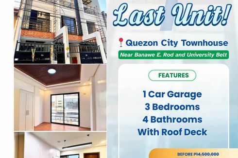 Last unit left! Brand new 3-Storey Townhouse in E. Rod QC near Welcome Rotonda and Puregold QI