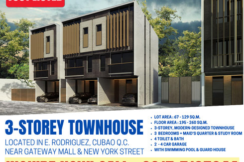 3 Bedroom Townhouse for sale in E. Rodriguez, Metro Manila near LRT-2 Araneta Center-Cubao