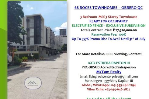 VERY NEAR TO FISHER MALL TRINOMA/SM NORTH EDSA RFO 3-BEDROOM 3-STOREY TOWNHOUSE 68 ROCES-QUEZON CITY ONLY 100K TO RESERVE