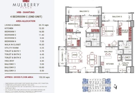 4BR condo FOR SALE Unit 1609 Shantung Bldg || Mulberry Place - 152sqm in Acacia Estates Taguig City