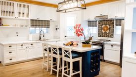 Kitchen with large island with wine rack