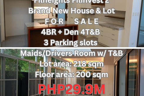 Immerse yourself in the epitome of modern living in this spacious and luxurious 4-bedroom apartment + den newly listed in Filheights, Filinvest 2. Priced at 29.9M PHP, this breathtaking property boasts of a generous floor area of 200 sqm nestled comfortably in a lot area of 218 sqm - providing an experience of luxury and comfort. Each of the 4 bedrooms is matched with a well-appointed toilet, offering a total of 3 full toilets plus an additional powder room for guests. Living is made easy with features like ample parking for 3 vehicles, a room for your dedicated maid, and a separate quarter for a resident driver. Explore every corner of your own personal haven – from the welcoming living room to your very own modern kitchen. This captivating apartment promises the perfect blend of grandeur and functionality. Get ready to step into a world of luxury and comfort.