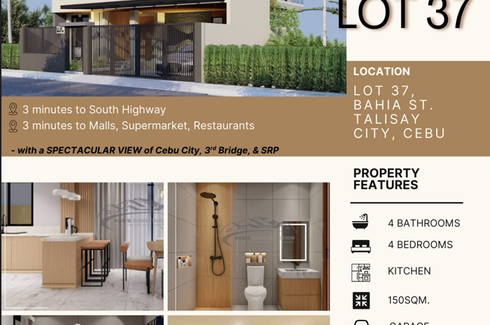 Experience modern luxury and city-view living in Vista Grande Lot 37, a stunning single detached home located along Bahia Street, Talisay City, Cebu. This residence combines elegant design, functionality, and exclusivity — perfect for families, professionals, or investors looking for a premium address just minutes from Cebu City.
