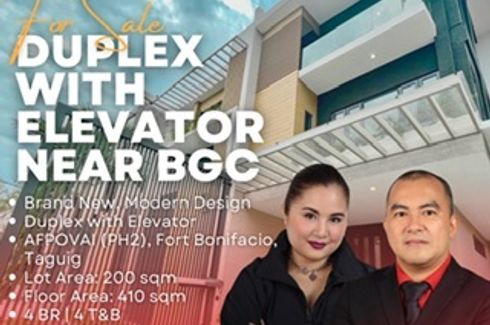 For Sale: Brand New Spacious 4 Bedroom Modern Duplex with Elevator in AFPOVAI near Bonifacio Global City and McKinley Hill in Taguig
