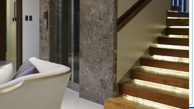With a high ceiling living room that has a grand chandelier and an elevator. Its a perfect way to welcome your guests and central to this highend New Manila home! The open layout leads you right towards the elegant dining area with a beautiful kitchen just beside. Not to mention the lanai surrounding this area that has a fountain and a pocket garden which perfectly complements the entirety of the ground floor. Â