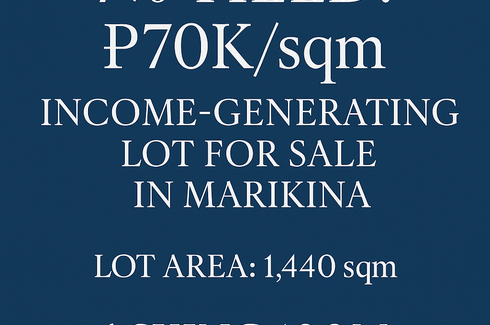7% YIELD | ₱70K/sqm – INCOME-GENERATING LOT FOR SALE – MARIKINA