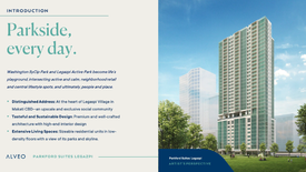 Parkford Suites Legazpi is a highly connected residential community within walking distance of the Makati CBD, Ayala Center, cultural spaces and educational institutions, and leisure destinations, embraced by green urban environments Washington SyCip and Legazpi Active Park. It is easily accessible via major road networks in Makati and the metro.Located at the heart of Legazpi Village in Makati CBD--an upscale and exclusive social community.Premium and well-crafted architecture with high-end int...